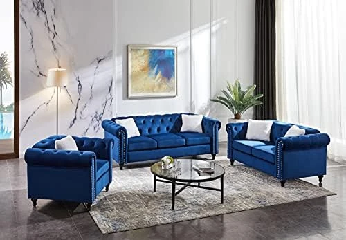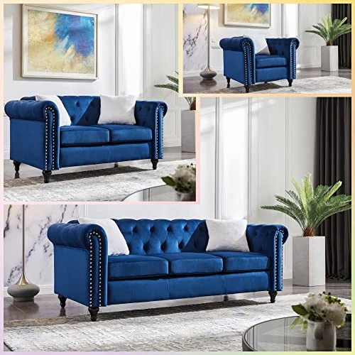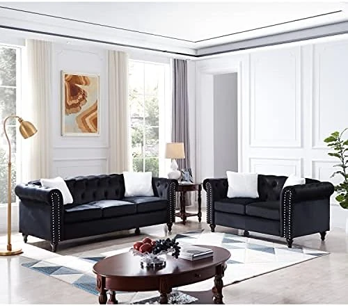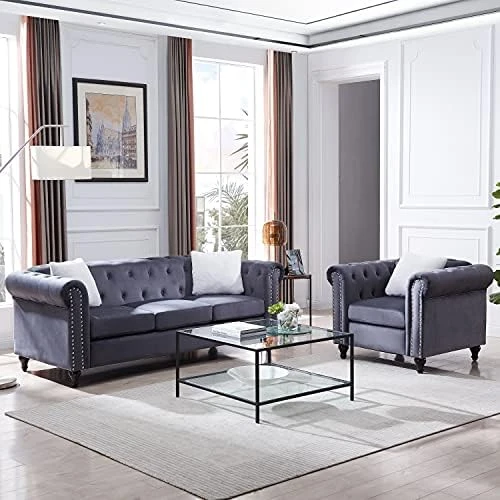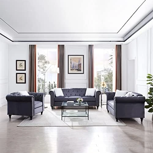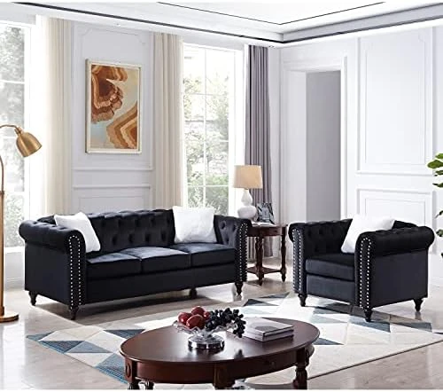 - 【Contemporary Style Living Room Couches】The perfect pick for meeting your aesthetic needs, this set features a contemporary look and a streamlined silhouette. Button tufting along arms and seat back gives a nod to the classic look, but the circular arc arms with trim make this a truly modern sofa.