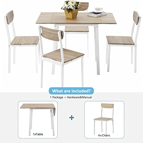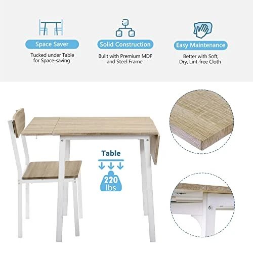 - 【High Quality Material】The Dining chair legs are made from solid steel tubes. Each leg is attached with a plastic footpad to protect your floor and prevent slips. MDF boards are covered with PVC tops and painted with waterproof painting. This drop leaf dining table and chairs built to withstand years of daily use.