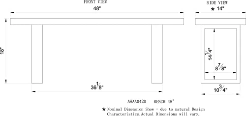 - DIMENSIONS: Assembled dimensions are 48″ W x 14″ D x 18″ H, making this bench the perfect compact size to fit in any room or entryway while still providing ample seating or storage options.