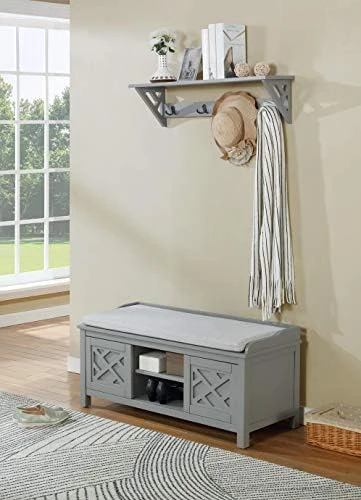 - DOUBLE COAT HOOKS: At 36” in length, this storage bench and coat hook set allows you to keep your entryway, mudroom, or laundry room neat, tidy and organized with 4 double coat hooks.