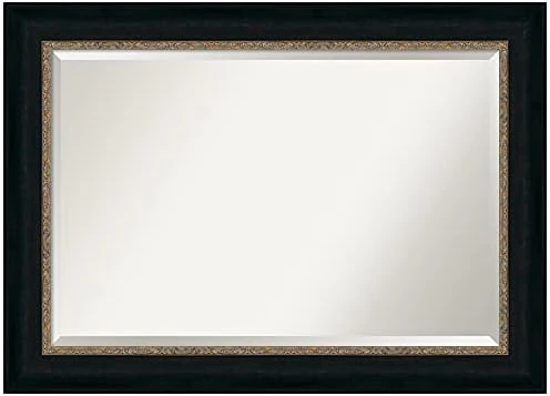 - DIMENSIONS: The overall size of this wall mirror measures 39.50 x 27.50 inches, including the frame. Its reflective area measures 36.00 x 24.00 inches and has a 1-inch bevel. The mirror works perfectly as a bedroom mirror, office mirror, entryway mirror, vanity mirror, or bathroom mirror.