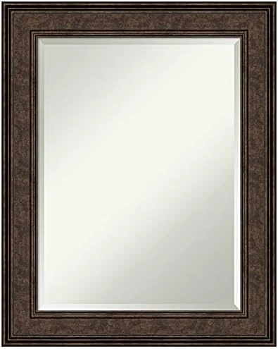 - QUALITY MATERIALS: You can’t mistake the quality of handmade mirrors for your wall decor. The Accent Bronze Narrow 2.01″ frame is a contemporary, burnished bronze frame with a lifted outer ridge and face that scoops down to meet an inner dark golden beaded edge. The frame measures 2.01 x 1.01 inches. All Amanti Art wall mirrors are finished with a paper backing to prevent moisture and dust buildup.