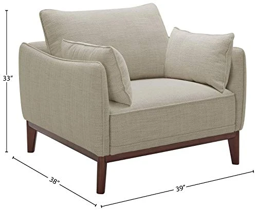 - Solid hardwood frame, tapered wood legs, and 85% polyester and 15% acrylic performance fabric