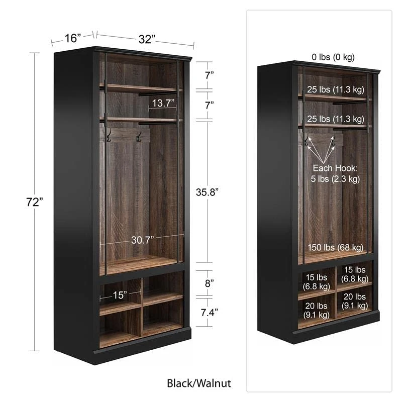 - Wide bench for putting on shoes or storing backpacks, online returns or other items to grab quickly on the way out the door