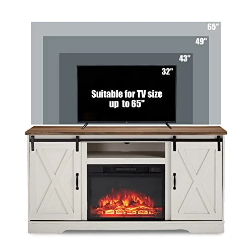 - 【Sliding Barn Door】Classic sliding barn door design upgrading the decoration style. The two sliding barn doors glide smoothly along door track hardware to keep storage hidden or reveal home accents you wish to show off.A Built-in Magnet to Insure the door stays open during the electric fireplace operation.