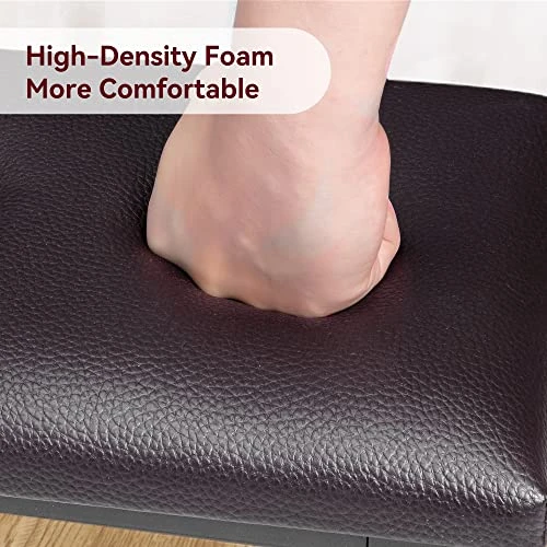 - More Comfortable benches: This dining table sets with 2 benches made of premium MDF board and solid steel, which features a sturdy frame for a long lifespan. The use of metal pipes with a larger diameter makes the kitchen bench more stable and comfortable than other products. The Upgraded Dining Bench seats are padded with thick cushions, keeping you comfortable all dining time. More comfortable than the traditional wooden Bench.