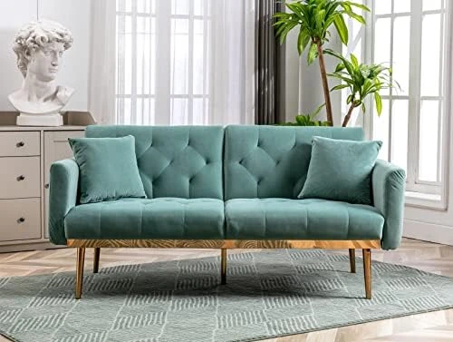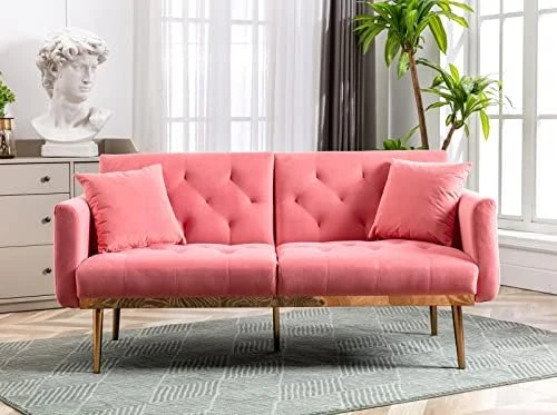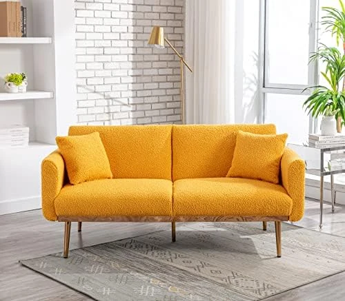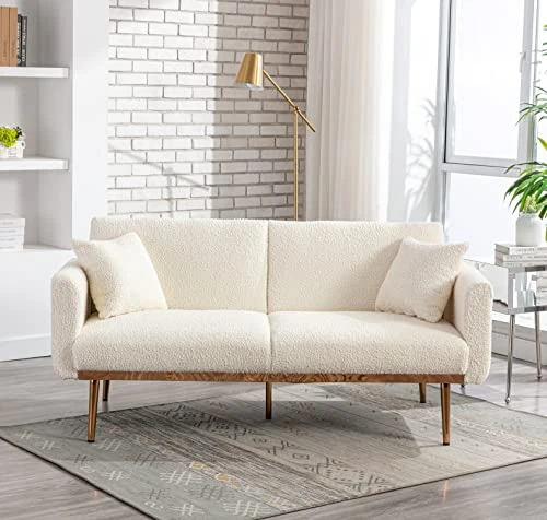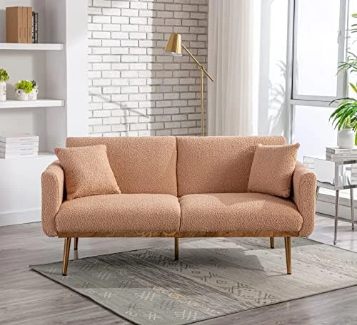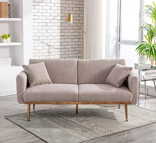 - ►【Stylish & Chic Design】The teddy fabric surface and the rose golden metal legs make this convertible sofa look elegant and stylish. The surface of the backrest and seat cushion adopts a diamond cutting design, making the sofa more chic. Two soft pillows can make the sofa more distinctive.