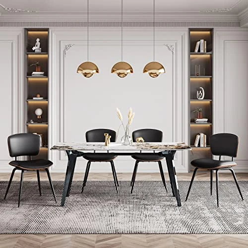 - 【Ergonomic Design】Dining chairs with leather seat cushion, comfy sponge around the backrest provides waist support, relieve the back pain. Armless style provides enough space for various sitting postures. Comfortable sitting for a long time.