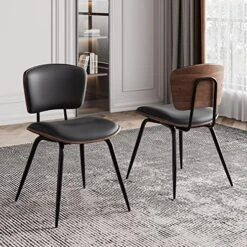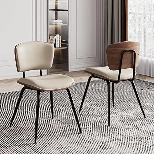 - 【Modern Design and Material】 Dining Chairs with mid-century style dining chair’s elegant and generous appearance.Matching any homes and offices.Ergonomic design of perfect height and curved seat supports your back well in sitting.With solid walnut bentwood&faux leather back and seat, wood legs for durability and longevity.Our chair with adjustable foot pads, adjust balance you want and floor protectors.