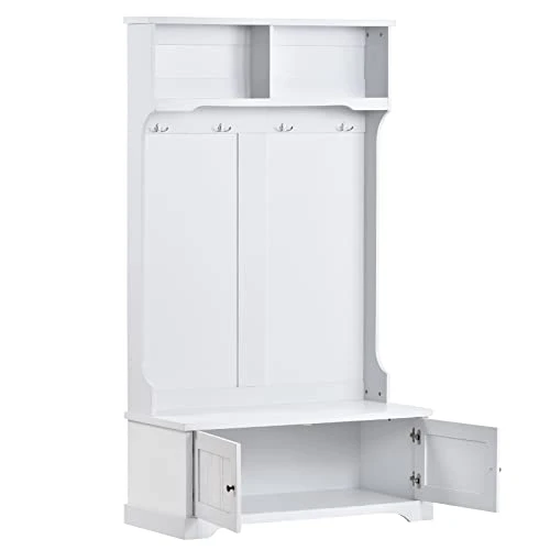 - ☆Various Storage Option:Storage bench at the bottom of the hall tree features a full size shelf to hold your shoes and 2 drawers for other belongings.4 hooks in the middle to hang coats,scarves and hats.2 upper open compartments can palce your bags,decors and larger items.