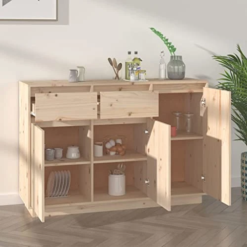 - Premium material: Solid pine wood is a beautiful natural material. Pine wood has a straight grain, and the knots give the material its signature, rustic look.Equipped with 2 drawers and 3 doors, the cabinet offers ample storage space for keeping your various daily essentials well organized and within easy reach.