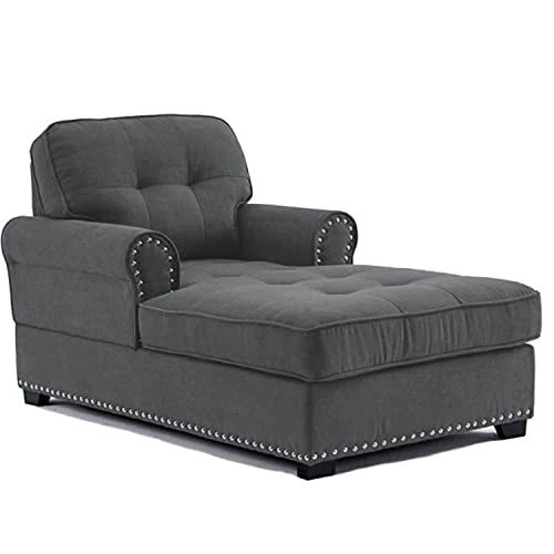 - Stylish Design Chaise Lounge:There are rivets on the edges and the button-tufted on the backrest,enrich its stylish and have a never out of fashion appearance,Overall Size: 59″*34″*33.5″,suitable to living room, waiting room, hotel, reception, cafe,bedroom and office.