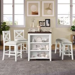 - 【Space-saving Solution】Worried about lots of odds and ends? Built-in functional storage in this set offers a practical solution for you. With a 3-tier shelf, dishes, bottles and other stuff have their own places while keeping them in handy. All of chairs and stools can also be stacked under table easily to release more room.