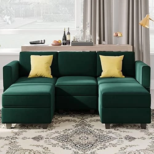 - Large Capacity Storage Space: The storage spaces are under each 4 seats for blankets or other things that you want to store at hand. The storage of modular sectional sofa can be opened widely and you can easily pick out and put in the things and no need to worry about insufficient spaces. Storage dimensions: 22.40”(L)*22.40”(W)”*5.70″(H)
