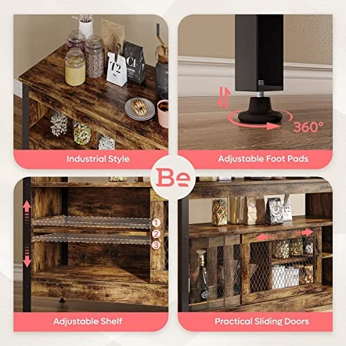- 🧡PLENTY of STORAGE SPACE – The buffet cabinet comes with adjustable shelves that we pre-drill at three different heights, so you can adjust the height of the shelves according to the actual items stored. The sliding mesh doors can slide to any position at will, effectively protecting storage space while preserving some display space.
