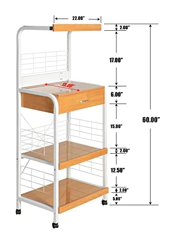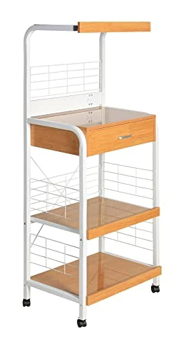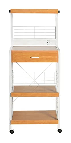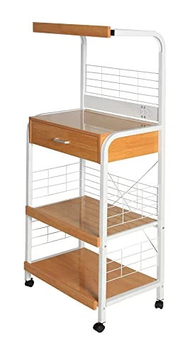 - Comes with power socket for your microwave or other small kitchen appliances and lockable wheels for ease of use.