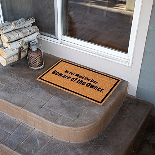 - STANDARD SIZED WELCOME MAT. DIMENSIONS: 30” Width x 18” Depth x .59” Height. Weight: 4.5 lbs. MATERIAL: Natural Coconut Coir, Vinyl