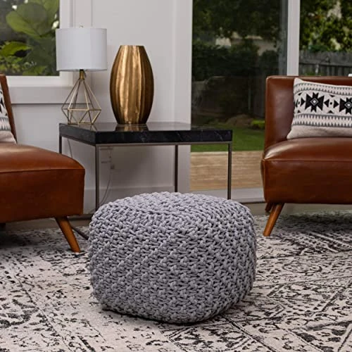- HAND KNITTED: each pouf is hand knitted by skilled knitters giving you a unique and high-quality foot stool
