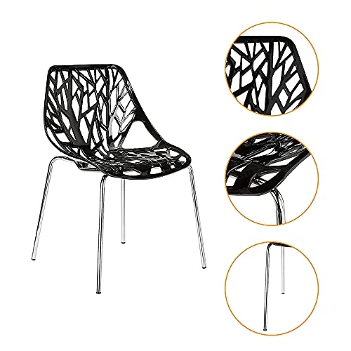 - STACKABLE PRACTICAL: These tree chairs are 100% stackable and light for easy transport and storage. They feature high grade stainless steel legs, chrome finished with floor protectors.