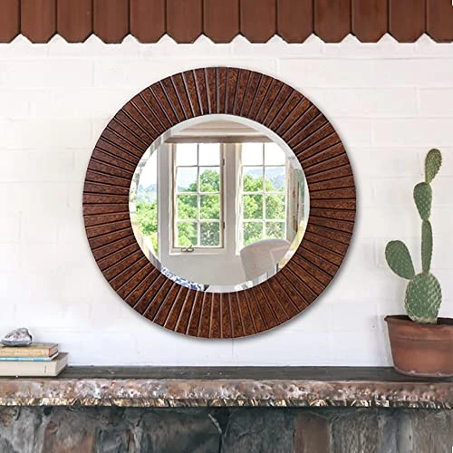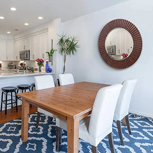 - Large round wall mirrors is made of high-quality glass, reflects clear image that gives the best visual experience. 0.3” beveled glass makes the bright light bounce around to provide a second look at your favorite decor mirror.