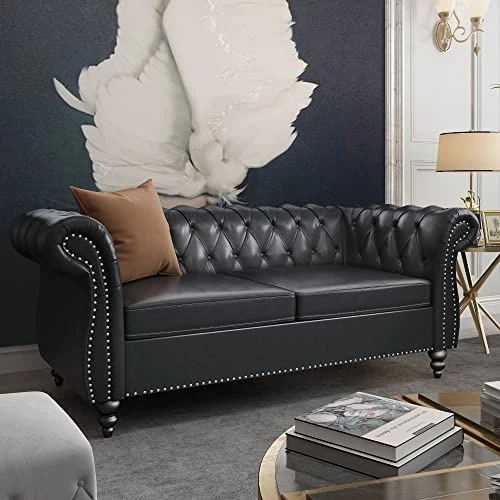 - 【Chesterfield Style】A tufted deep button sofa couch with nailhead accents, scrolling arms, and a Chesterfield-style design, it gives an atmosphere of luxury.