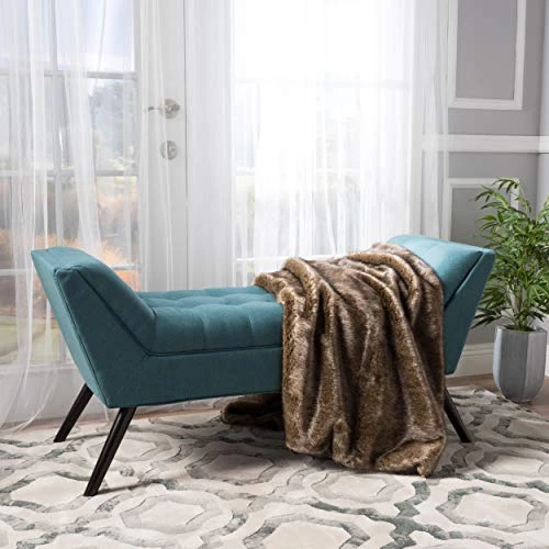 - Enjoy this stylish bench at the foot of your bed, or anywhere you need a bench in your home. Not only does this bench feature a comfortable padded seat cushion, but the stylish upturned wide U shape guarantees that you will be comfortable while seated there, no matter what you are using the bench for.