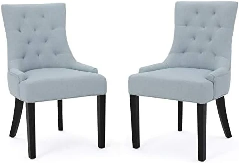 Treat your dining space to a luxurious chair set that will provide you and your guests ultimate comfort while you eat. This chair set offers elegantly sloped armrests that complement the tufted diamond stitching in the backrest, blending seamlessly with any number of dining table styles. Bringing an instant transformation to your dining area, our chairs feature sophisticated upholstery and contemporary design to give any home a breath of color and an impressive style that will leave your guests in awe.