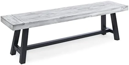 - Includes: One (1) Bench. Material: Acacia Wood. Leg Material: Iron