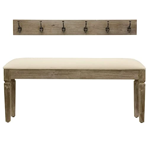 Sanit Birch Hawksbury Transitional Antique White Hall Tree And Shoe Bench