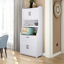 Kings Brand FURNITURE White / Walnut Finish Wood Kitchen Storage Buffet Cabinet