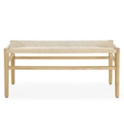 Rustic Design Indoor Bench With Rope And Rubber Wood Legs Natural Solid Modern Contemporary