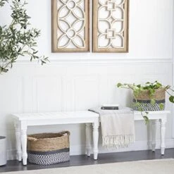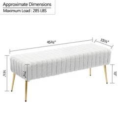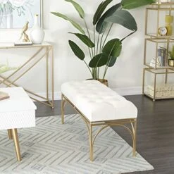 Deco 79 Metal Bench With Velvet Seat, 39″ X 16″ X 18″, White