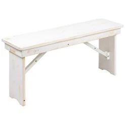 EMMA + OLIVER 40″ X 12″ Antique Rustic White Solid Pine Folding Farm Bench – Portable Bench
