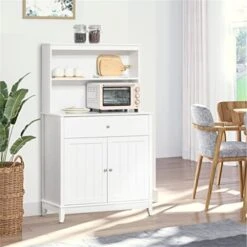 58″ Kitchen Buffet, Dining Room With Drawers And Storage Cabinets, White