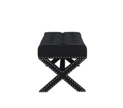 Iconic Home Dalit Updated Neo Traditional Polished Nailhead Tufted Linen X Bench, Black