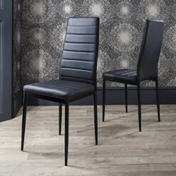 IDS Online Dining Side Chair With Foot Pad Black Modern Style PU Leather