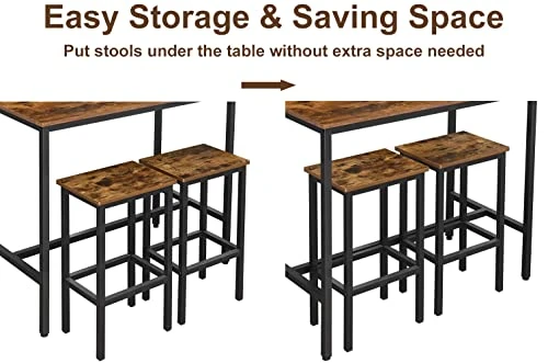 - 【Saving Space for You】Two 15.7”L x 11.8”W x 25.7”H bar chairs fit perfectly under the table. Could place your other stools chairs under the high & wide table too.