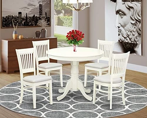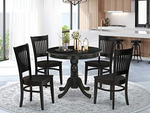 - Delivering an attractive Kitchen table set to enhance the magnificence of the dining room with stylish style. This dining room table set includes 4 chairs for a dining room and a beautiful round wooden dining table that will increase the charm of any dining room with their ageless design.