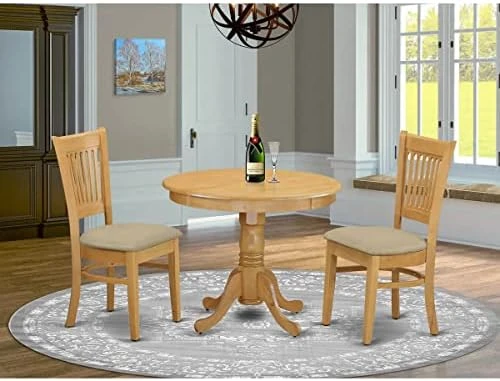 - This dining room table set traits comfortable Oak Wooden seat and Pedestal legs, the frame of these kitchen chairs and the gorgeous dining table is built from high-quality Oak Finish wood, which creates the best choice quality color Combination to give a magnificent gaze to your kitchen.