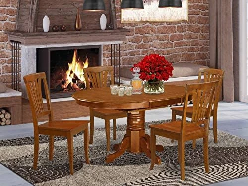 - Offering a Dinette set to increase the magnificence of the dining room. This wood dining table set includes 4 wooden chairs and a butterfly leaf round table that will improve the attractiveness of any dining room with their timeless design.