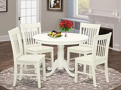- The 5-piece dining table set consists of a dining table and 4 kitchen chairs. This dining table set gives a level of sophistication to your kitchen area. Sturdy Asian Wood legs and good quality cover produce these dining chairs stable and beautiful.