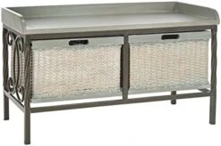 Safavieh American Homes Collection Noah Storage Bench, Antique Pewter And French Grey