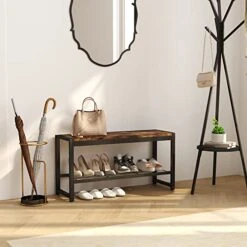 Hallway Mud Room Foyer Bench 42 Inch With Second Shoe Shelf And Matching Coat Rack Cubbie