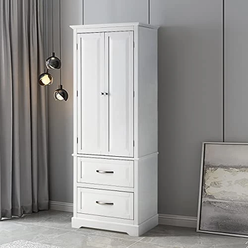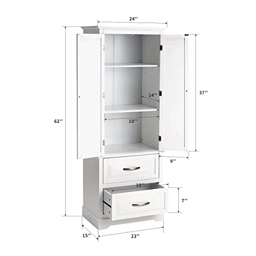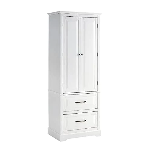 - [ ELEGANT & AESTHETICALLY ] The round knob, handles and hinges are maked by premium metal which is smooth and equisite. Pantry cabinets has overall white modern design fits well with your existing home decor