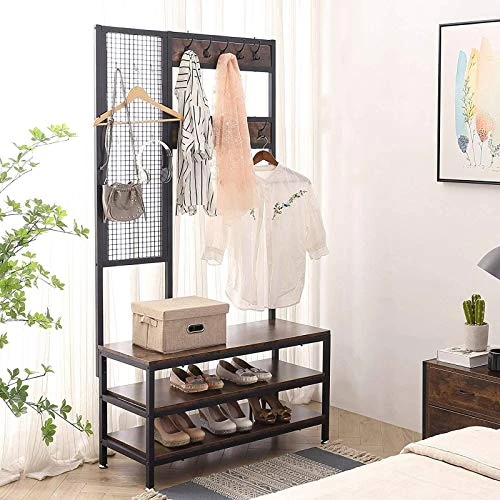 Be the first to review “Extrordinary Living Entryway Large Coat Rack Stand Shoe Bench 3-in-1 Hall Tree 3-Tier Storage Shelves With Steel Frame With Grid Wall Multifunctional Hallway Shelf Office Bedroom Wood Look Accent Furniture Hall Tree (Hang Wall) (Dark Walnut)” Cancel reply