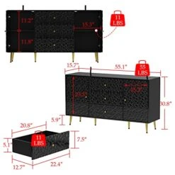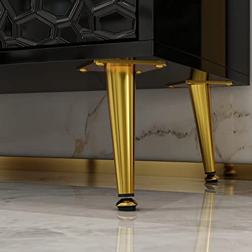 - [Material] – The entire sideboard is made of MDF board and particle board, with compact construction ensures stability and durability. The side, top, front panels are well polished, the 6 gold metal legs are sturdy enough to support the entire weight, preventing from bending.
