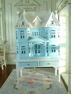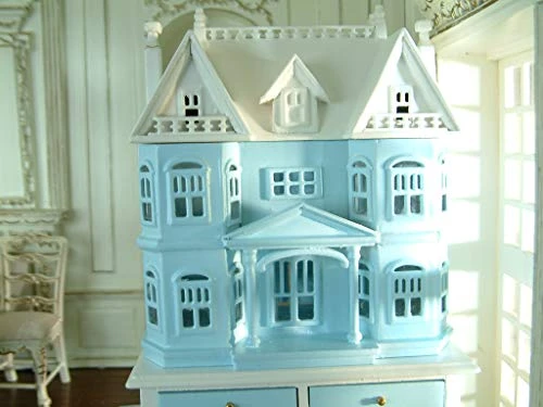 Exquisite Blue White French Villa Le Chateau Cabinet Hand Painted 1/12 Scale Luxury