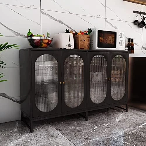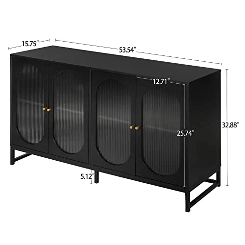 - 【Fluted Glass Design】 The sideboard cabinet designed with corrugated glass four door, translucent and artistic. Optimize indoor lighting and increase interior hazy beauty. Visual lift the floor height to alleviate the depression of small space.