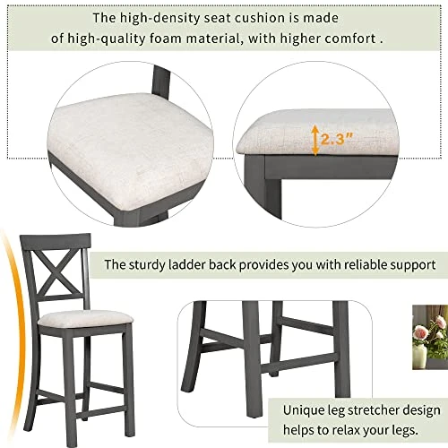 - Superior Comfort: The high-density seat cushion is made of high-quality foam material, with higher comfort and a thickness of 2.3 inches, which provides you with a soft sitting experience and allows you to enjoy delicious food in a relaxed state. The sturdy ladder back provides you with reliable support, and the unique leg stretcher design helps to relax your legs