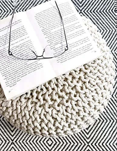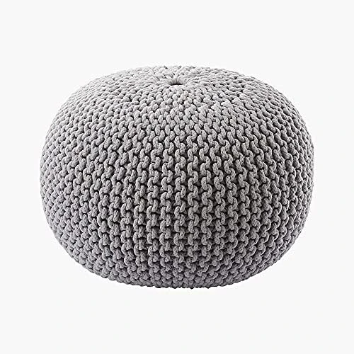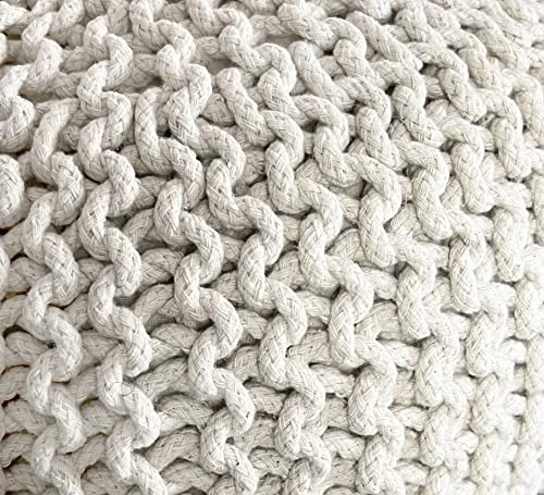- DIMENSIONS: Our hand-knitted ottoman stuffed has 20” diameter x 14“ height. Pouf floor ottoman is firm & can hold up to 265-330 lbs adult too. Weight of twisted rope design knitted pouf 7 lbs. Perfect color for your home decor.